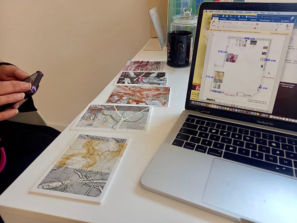 The gallery owner and I started the preparations, and looked into the arrangement of my art in the gallery.